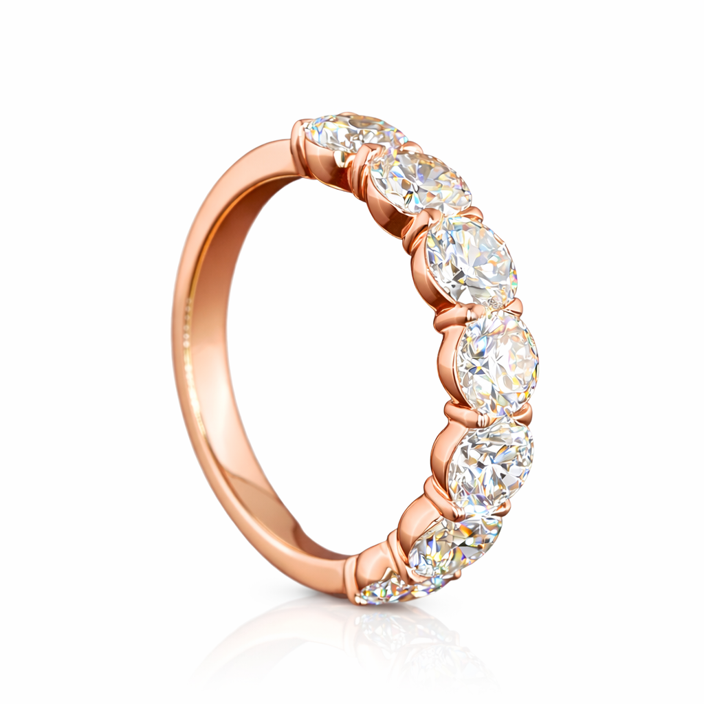 The Valerius Oval Cut 3/4 Band in 14K Gold represents the pinnacle of luxury and elegant everyday wear. This exquisite ring features a total of 2.04 Carats of dazzling Oval...