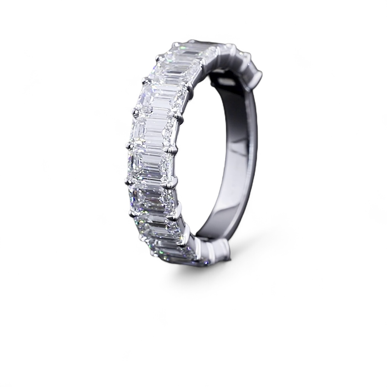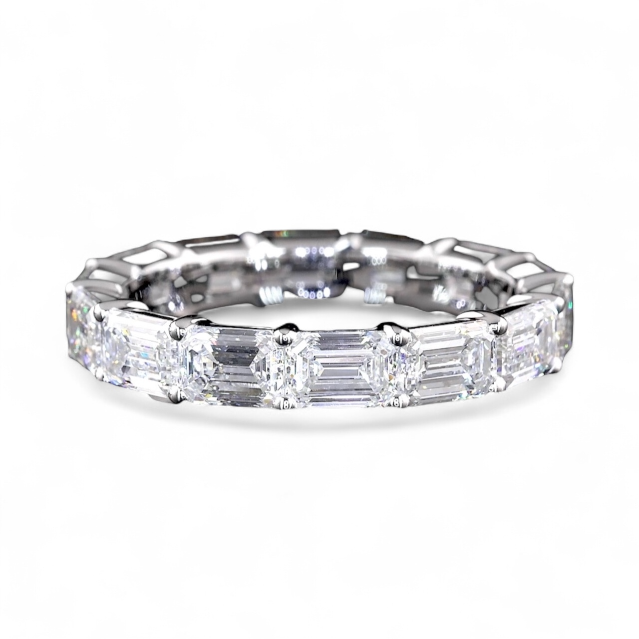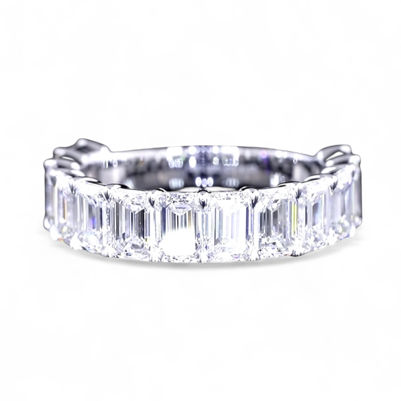 The Valerius Eternity Band is a magnificent symbol of enduring strength and elegance, featuring a commanding 4.1 Carat total weight of meticulously matched Emerald Shape diamonds. Handcrafted in radiant 14K...
