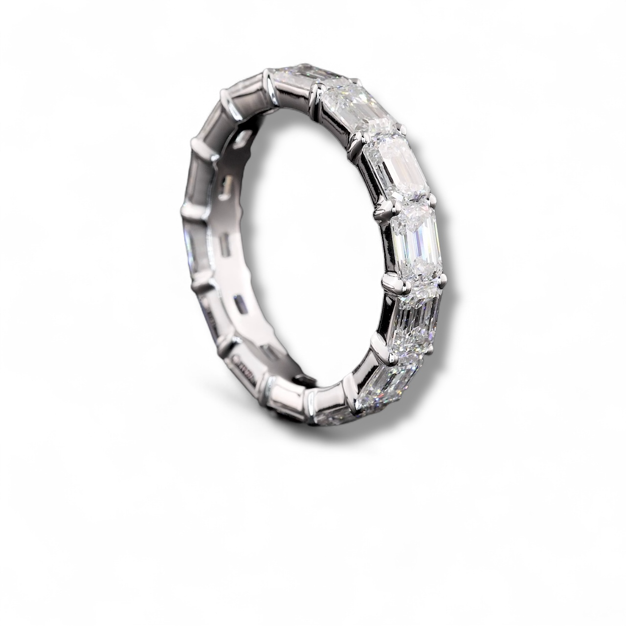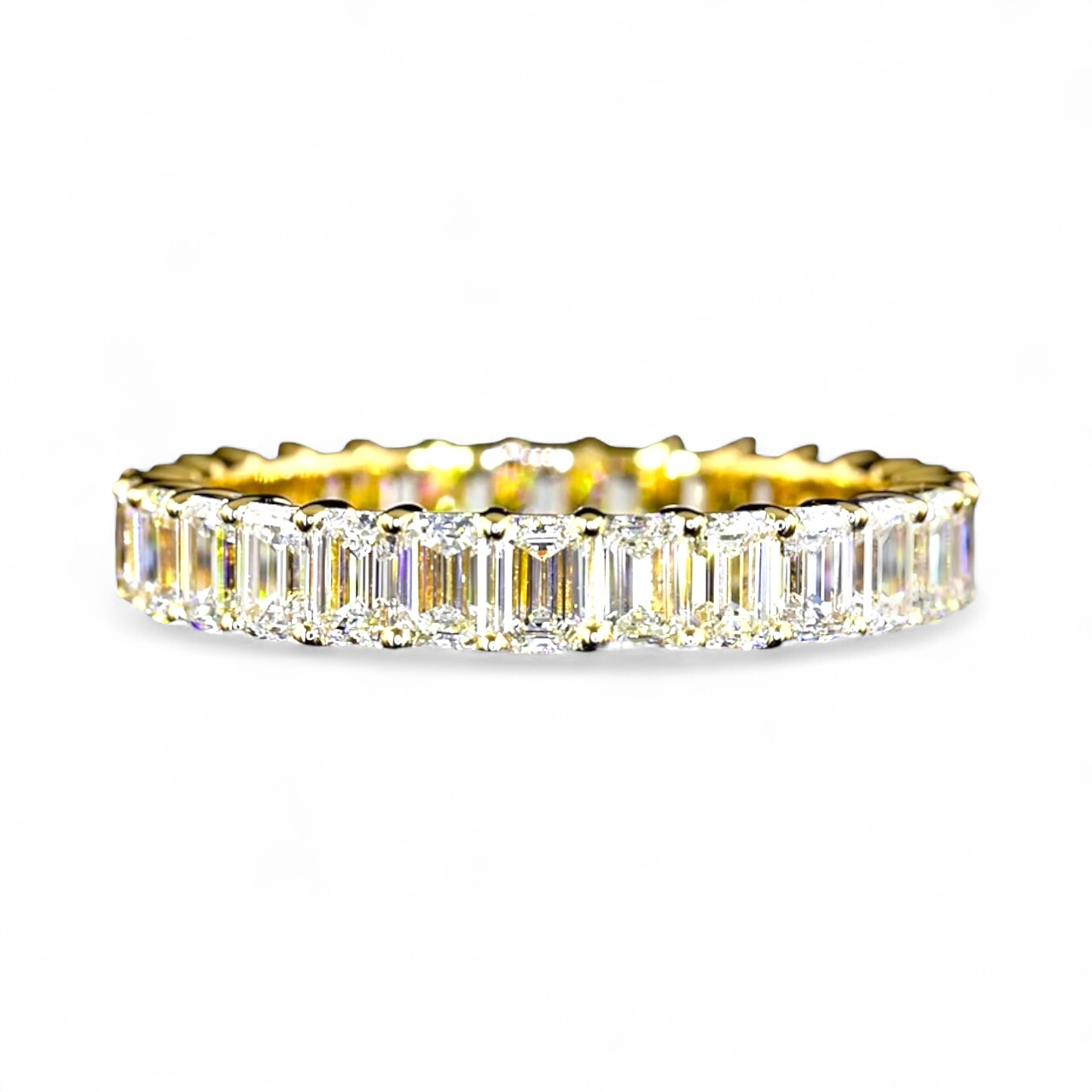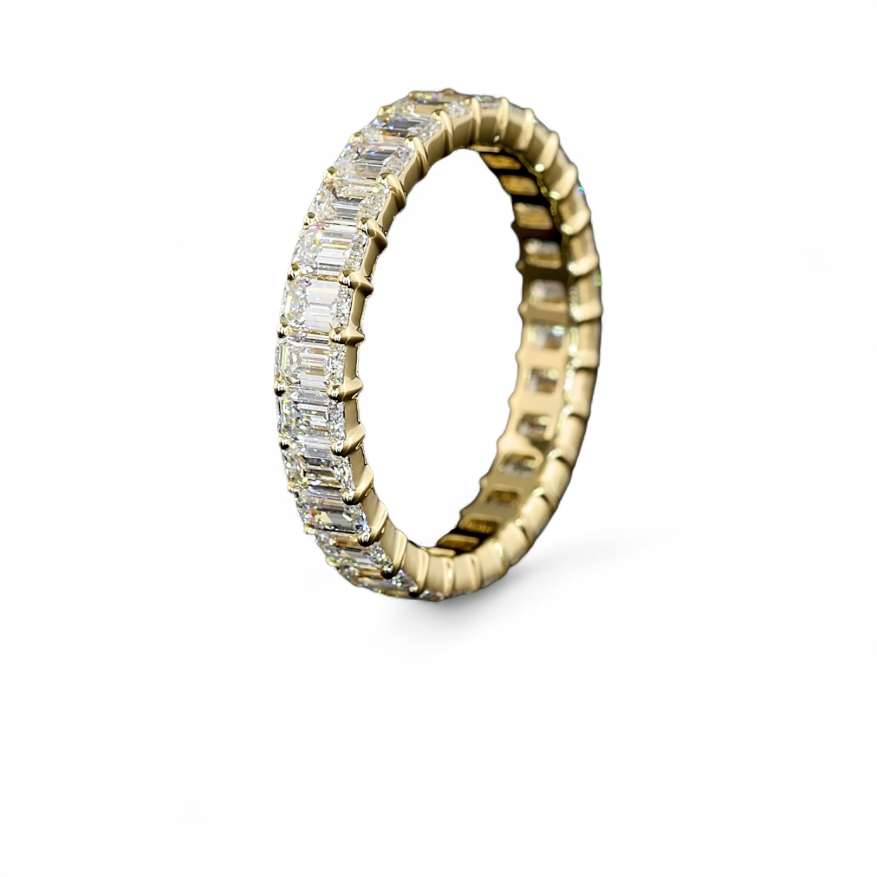 The Valerius Eternity Band is a magnificent symbol of enduring strength and elegance, featuring a commanding 4.1 Carat total weight of meticulously matched Emerald Shape diamonds. Handcrafted in radiant 14K...
