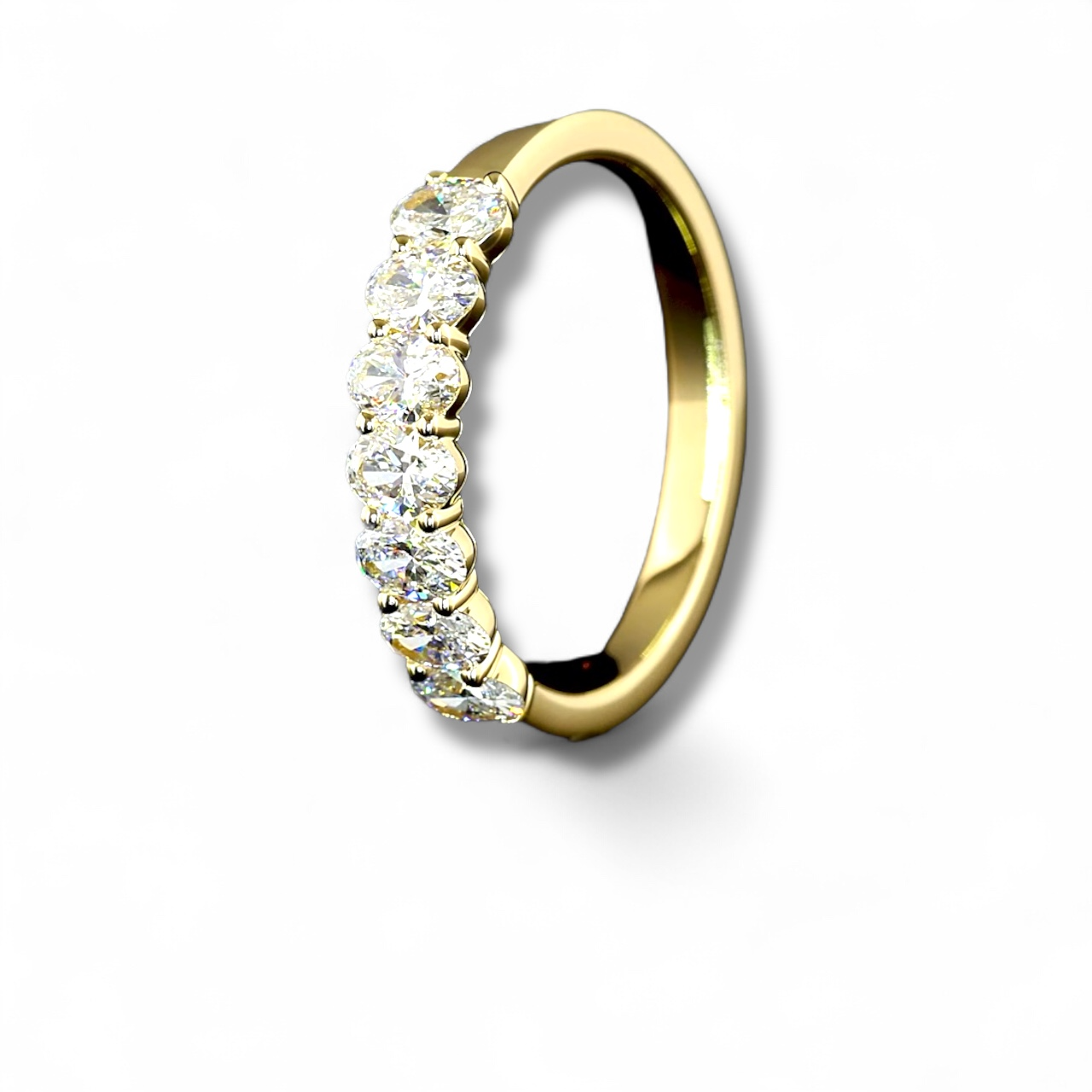 The Marigold Eternity Band is an opulent symbol of enduring love and passion, featuring a substantial 3.03 Carat total weight of brilliant Oval Shape diamonds. Handcrafted in rich 18K YELLOW...