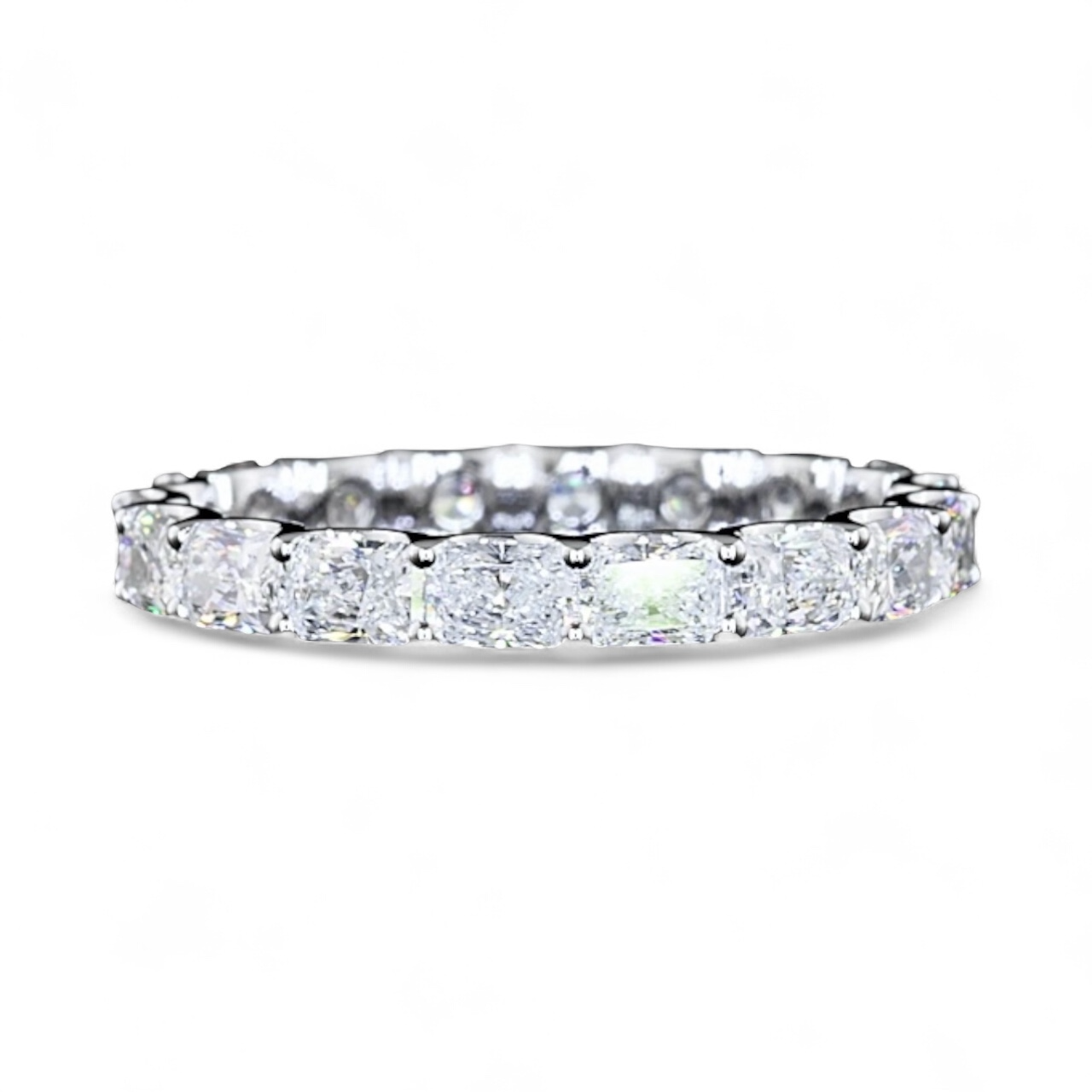 The Ignis Eternity Band is a magnificent ring that symbolizes intense light and unwavering commitment. It features a brilliant 2.05 Carat total weight of meticulously matched Radiant Shape diamonds set...