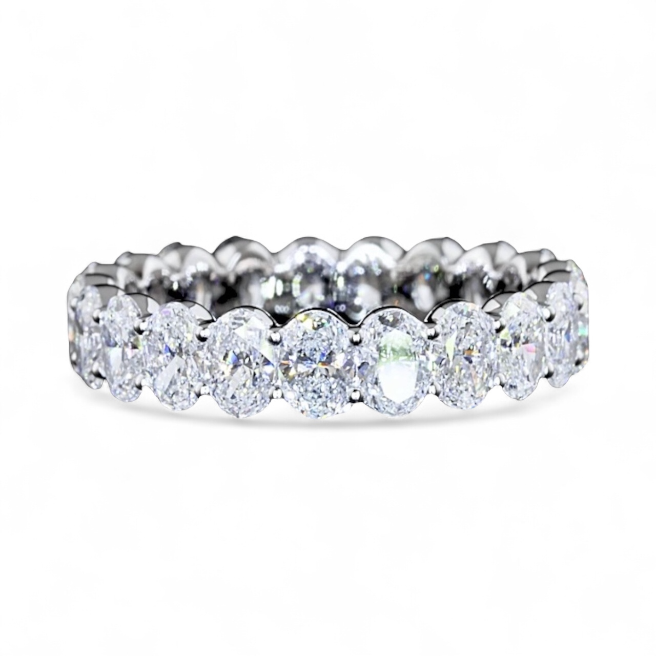 The Clarity Eternity Band is a pristine, high-quality ring symbolizing flawless, eternal commitment. It features an unbroken stream of brilliant Oval Shape diamonds, meticulously set in luminous 18K WHITE GOLD....
