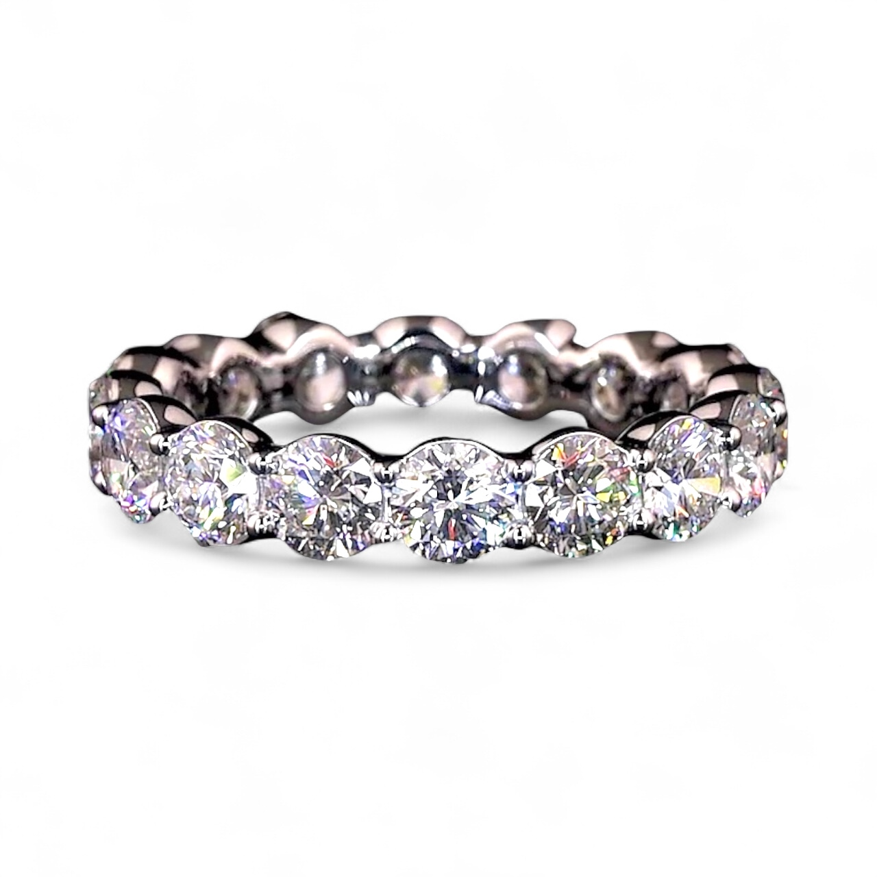 The Gwyneth Eternity Band is a luxurious symbol of eternal happiness, showcasing a total of 3.37 Cts of brilliant Round Shape diamonds set continuously around the band. Expertly crafted in...