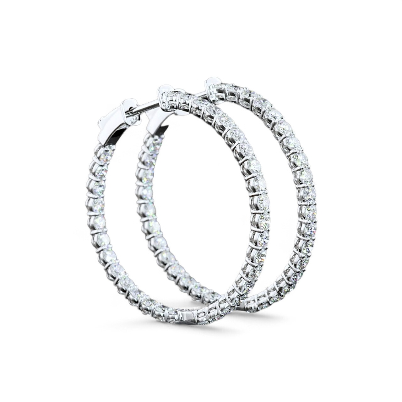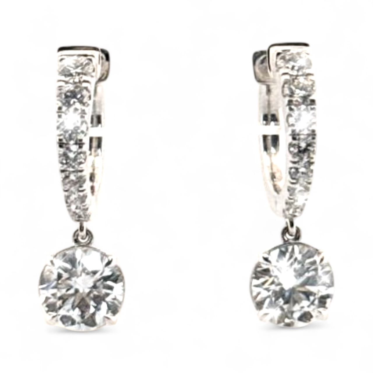 Elegant white gold hoops adorned with brilliant-cut diamonds, featuring a dazzling drop that captures every glimmer of light — a timeless blend of sophistication and modern grace. Diamond 2.53 ct...