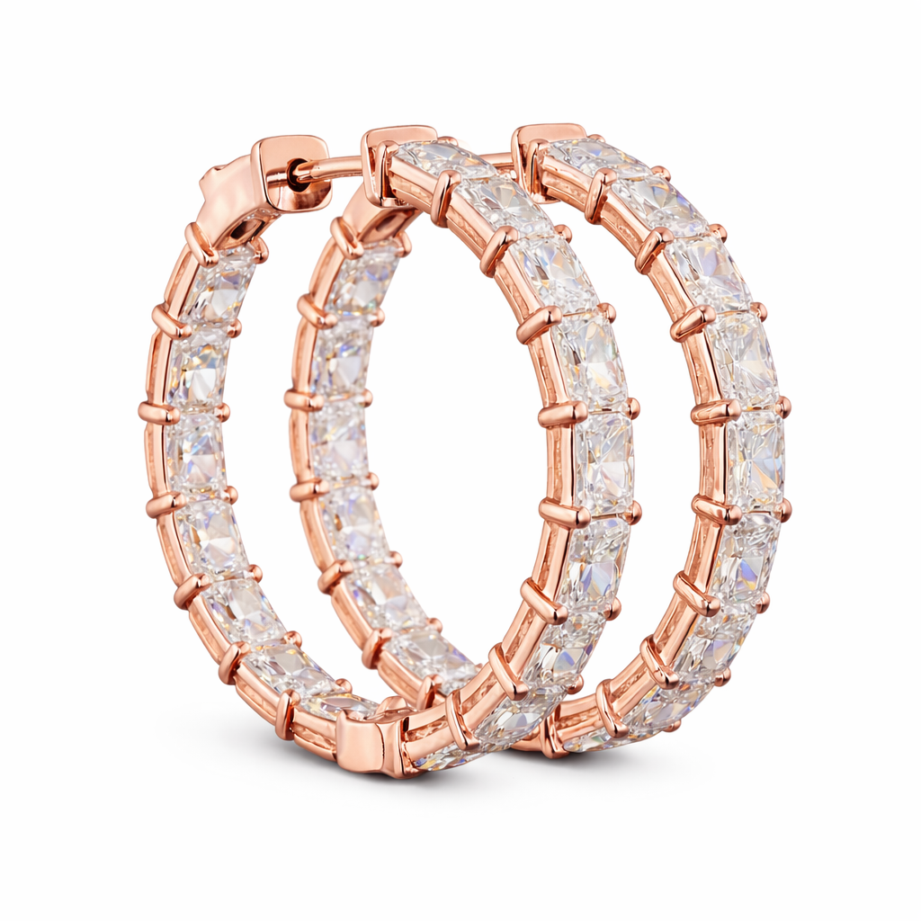 Crafted with precision, the diamond Hoops showcase beautifully set stones that catch light from every angle. Each pair of diamond hoop earrings delivers a refined balance of shine and structure, making them perfect for daily wear or special occasions.