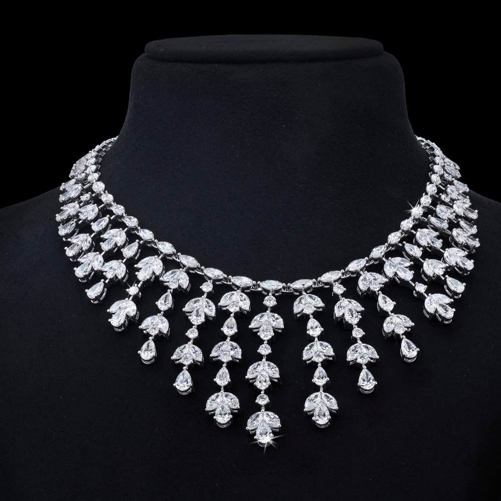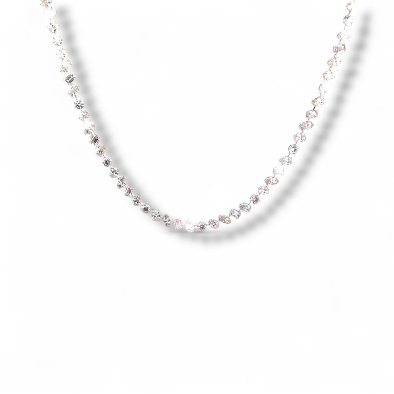 Celebrate timeless beauty with the Eternal Grace Diamond Necklace, crafted with alternating round and square-cut diamonds that sparkle with every movement. An ideal piece for brides, anniversaries, or evening wear, this...