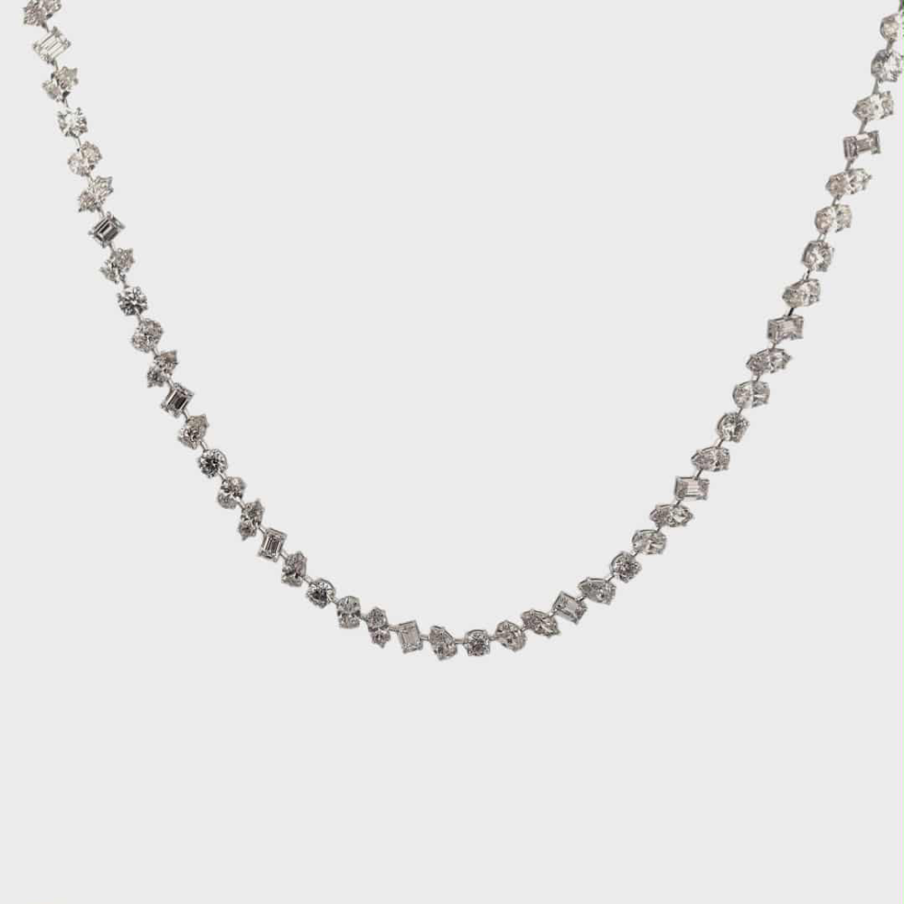 Celebrate timeless beauty with the Eternal Grace Diamond Necklace, crafted with alternating round and square-cut diamonds that sparkle with every movement. An ideal piece for brides, anniversaries, or evening wear, this necklace embodies love and sophistication.