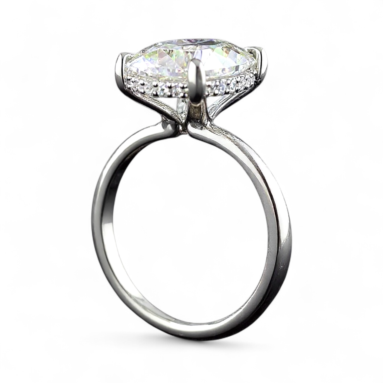 Elvarine embodies pure sophistication and radiant grace. This 4.95 Cts 14K White Gold Oval Shape Hidden...