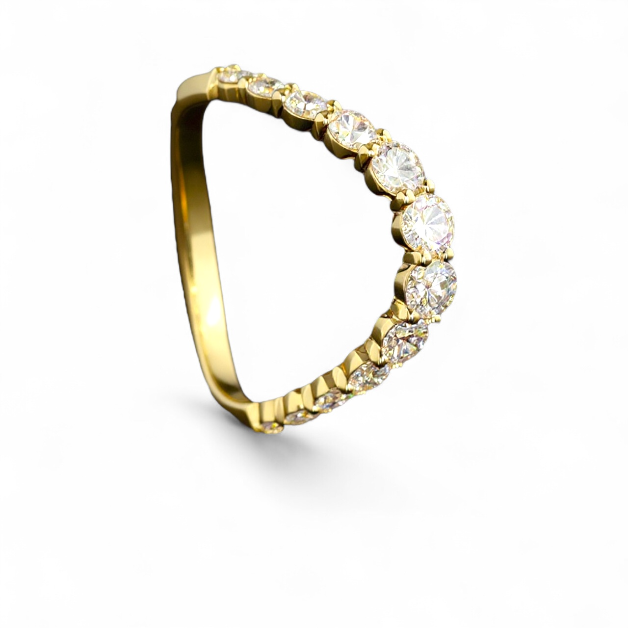 This ring embodies regal elegance and enduring value. This stunning round diamond band features an unbroken...