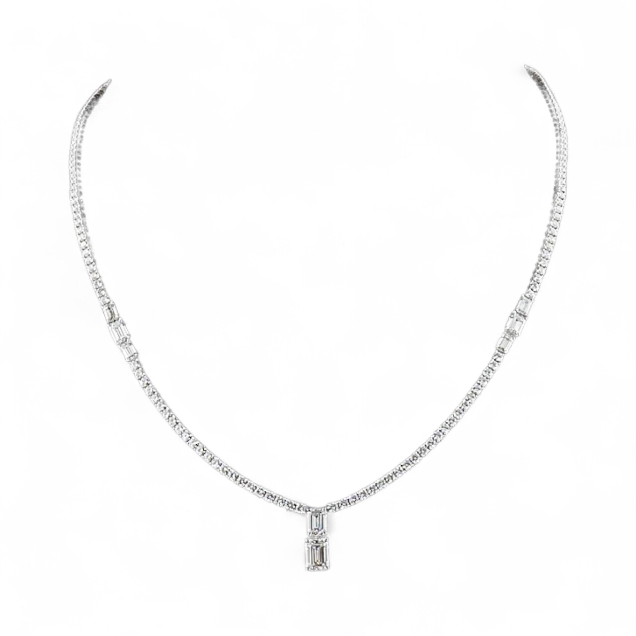 Velmira Necklace embodies structured beauty with a whisper of edge. The centered vertical drop draws the...
