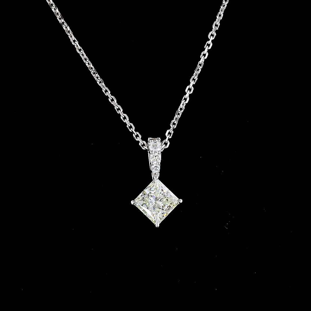 Where elegance meets royalty. A refined princess-shaped pendant that captures quiet elegance. With its radiant sparkle...
