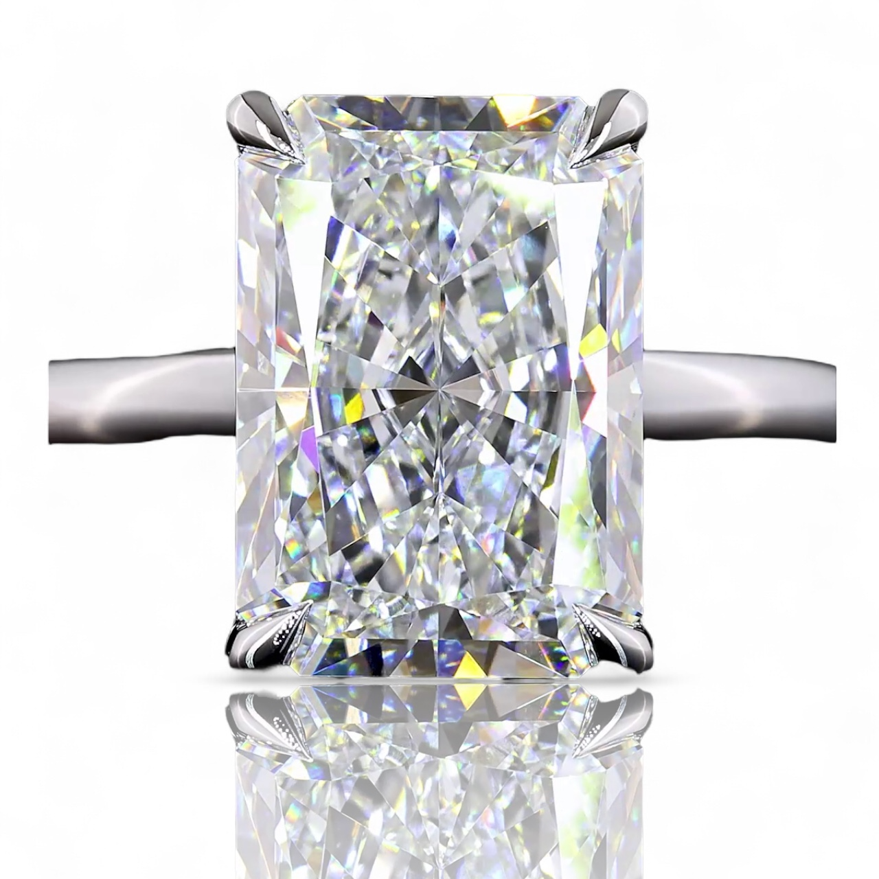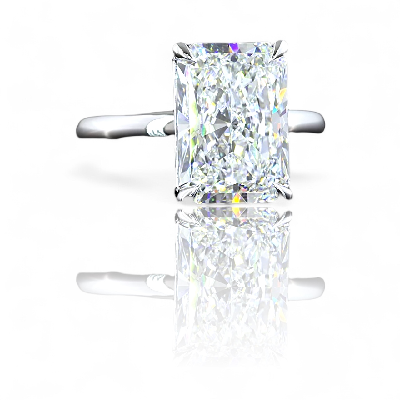 The Zephyr Ring offers a brilliant, dazzling presence, featuring a magnificent 5.08 Carat Radiant Cut Diamond...