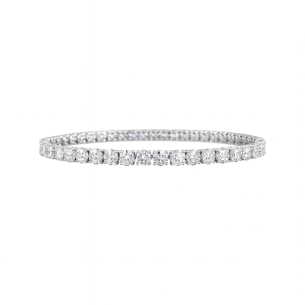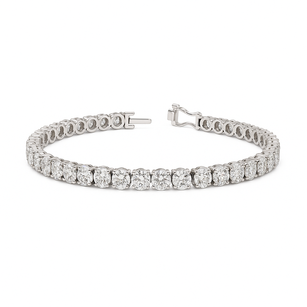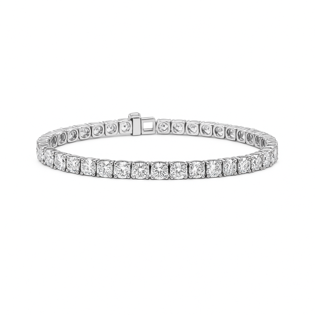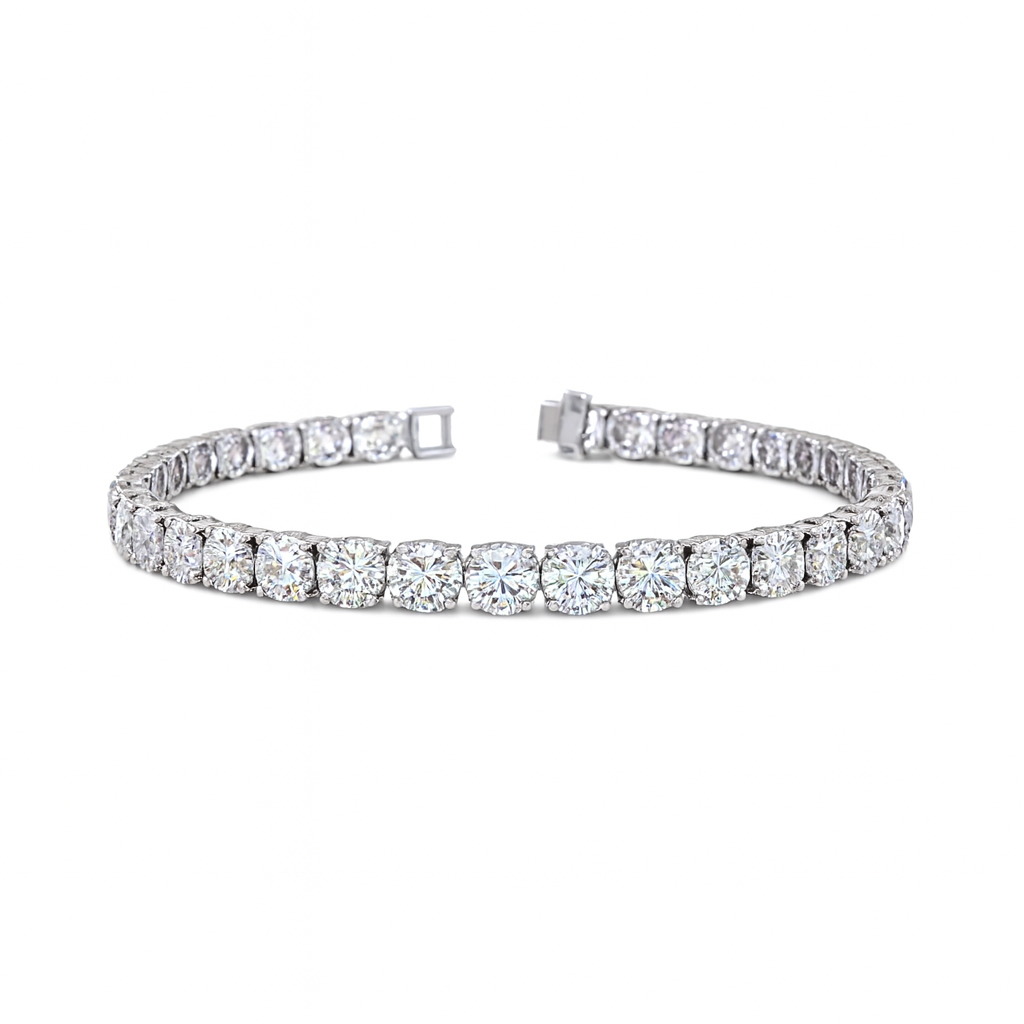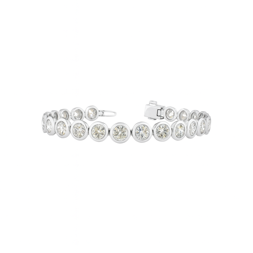 The Alistair Round Diamond Tennis Bracelet in 14K White Gold is the definitive symbol of commanding luxury and unrivaled brilliance. This magnificent Tennis/Riviera Bracelet features an almost ten-carat total, with a...