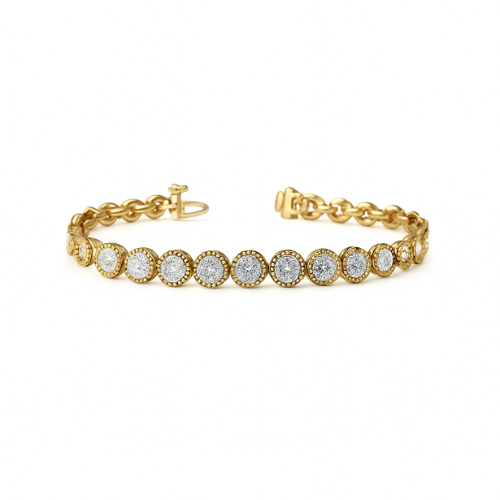 The Vanguard Round Diamond Tennis Bracelet in 18K Yellow Gold is a spectacular piece, asserting itself as a leading statement of luxury and pioneering brilliance. This magnificent Tennis Bracelet features a...