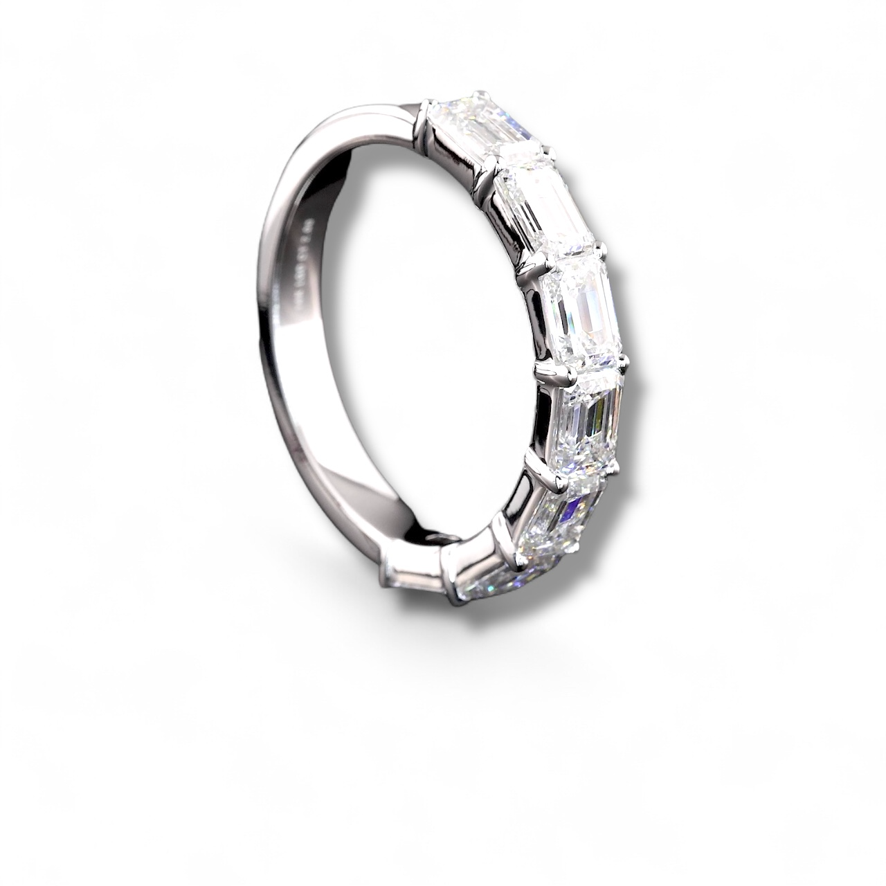 The Claire Emerald Cut Diamond Half Eternity Band in 14K White Gold is defined by modern precision and dazzling daily brilliance. This exquisite band features a substantial 2 Carat Total Weight...