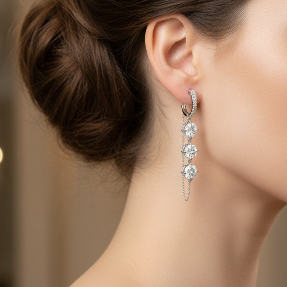 The Luminara Lab Grown Diamond Drop Earrings in 14K White Gold are designed to be a continuous stream of light that moves with you, instantly elevating any look. This spectacular...