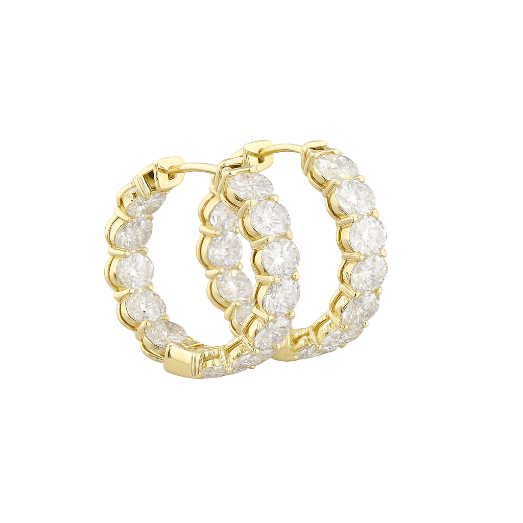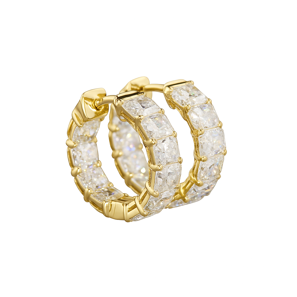 The Luxor Radiant Diamond Huggie Earrings in 14K Yellow Gold are an opulent and bold expression of modern luxury. These magnificent Huggie Earrings feature a significant combined 6.68 Carat Total...