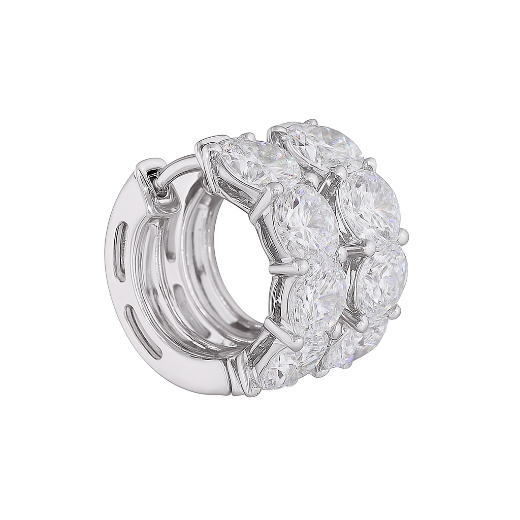 The Lumiere Oval Diamond Huggie Earrings in 18K White Gold are a luxurious expression of pure light and sophistication. These magnificent Huggie Earrings feature a substantial combined 5.16 Carat Total Weight...