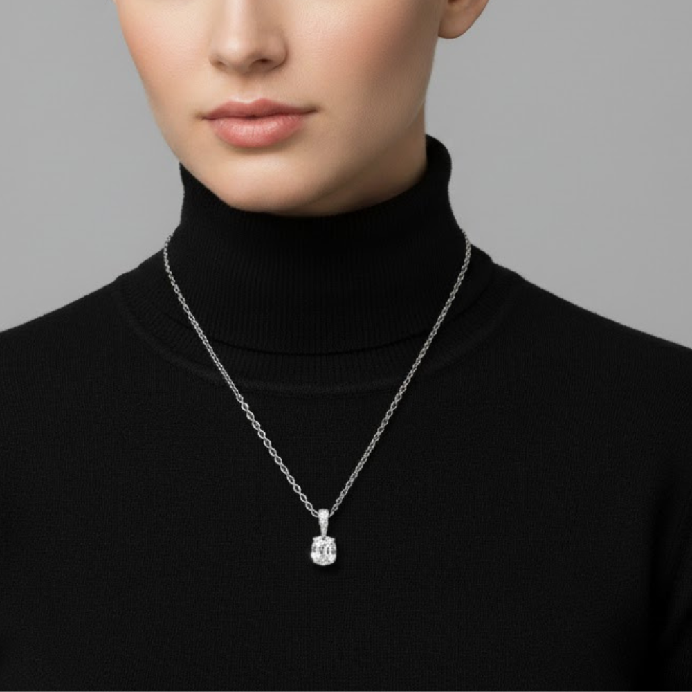 The Evalyn Diamond Pendant is classic beauty reimagined, fusing vintage charm with a modern sparkle. Designed for the romantic with a fresh spirit, this pendant features a stunning 2.77 carat...