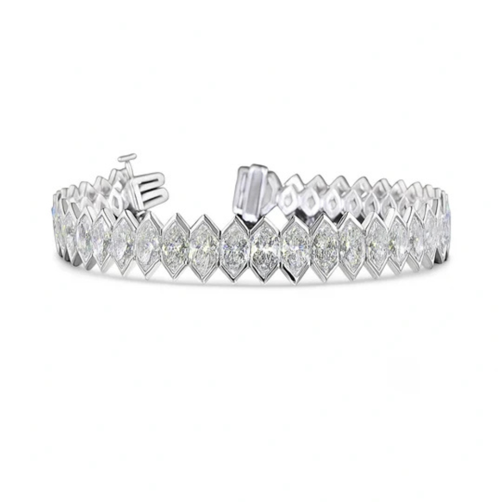 The Clarisse Diamond Bracelet is a graceful fusion of élan (elegance and flair) and soft, antique-inspired charm. This spectacular piece evokes the refined drama of the Marquise cut and the cool...