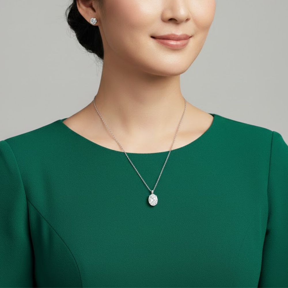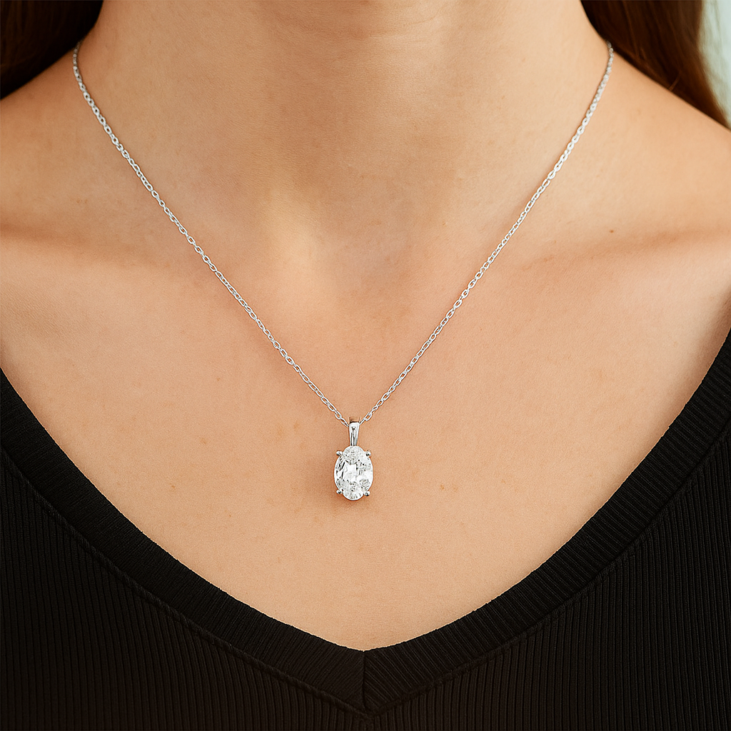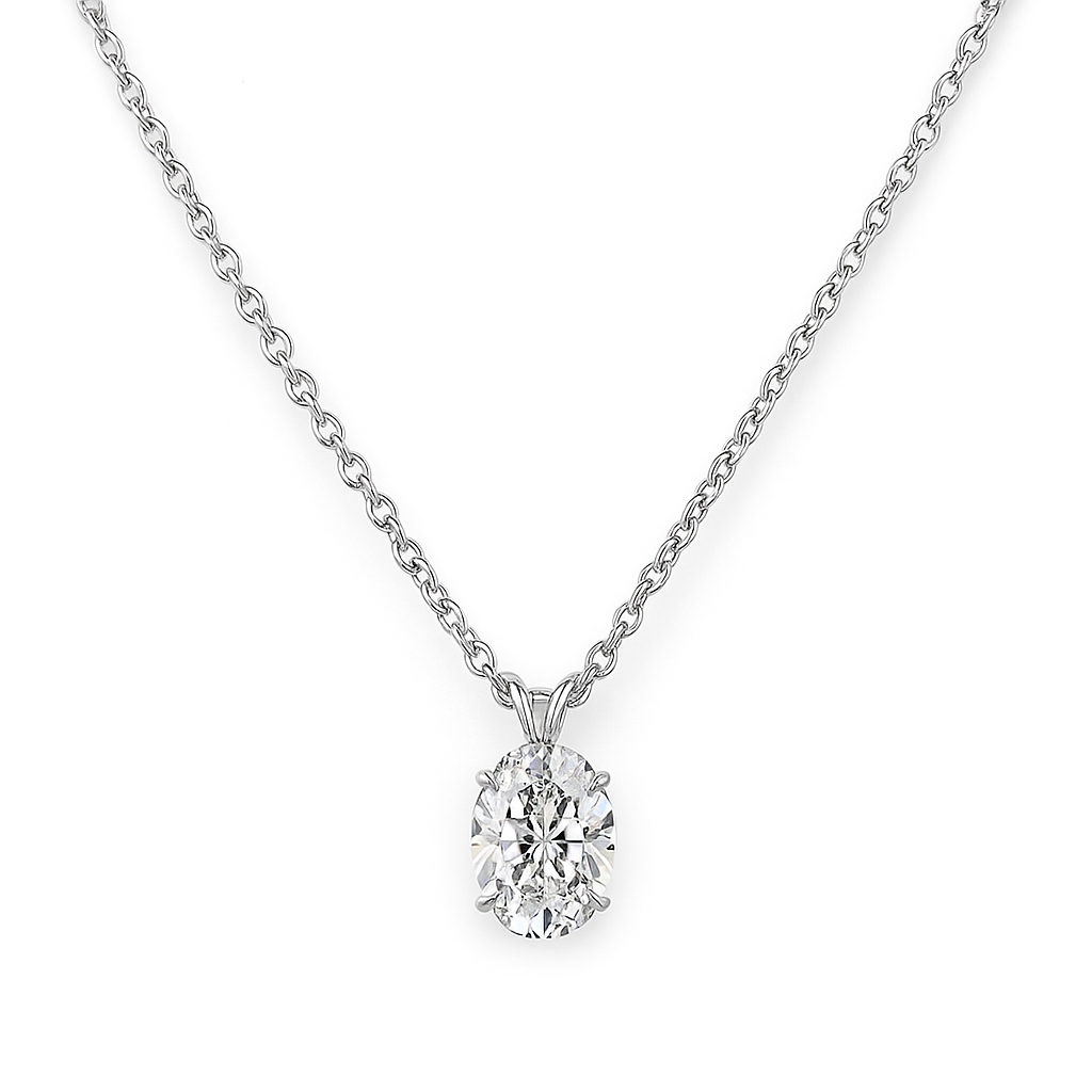 The Solayne Pendant is the embodiment of timeless elegance and refined simplicity. This magnificent solitaire showcases a substantial 3.15 Carat Oval Shape diamond, renowned for its elegant, elongated silhouette and...