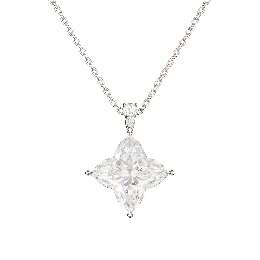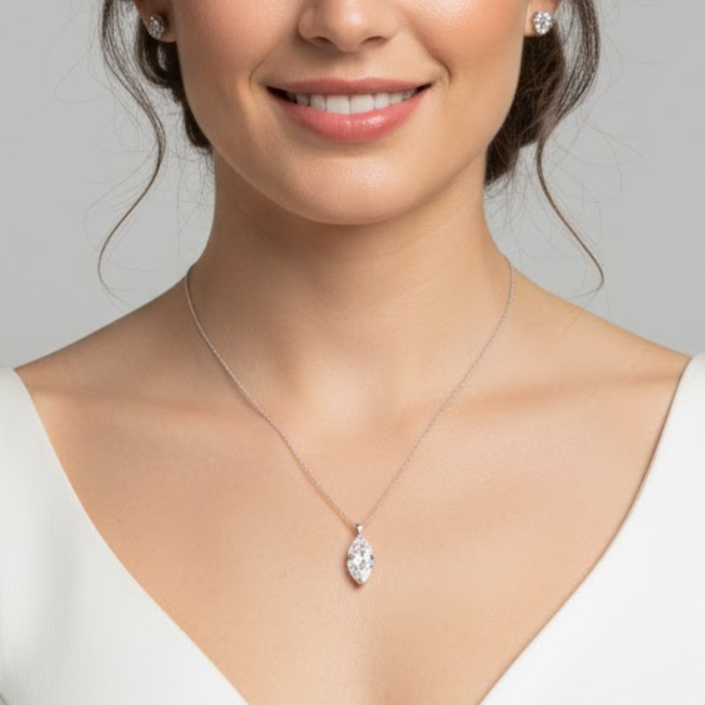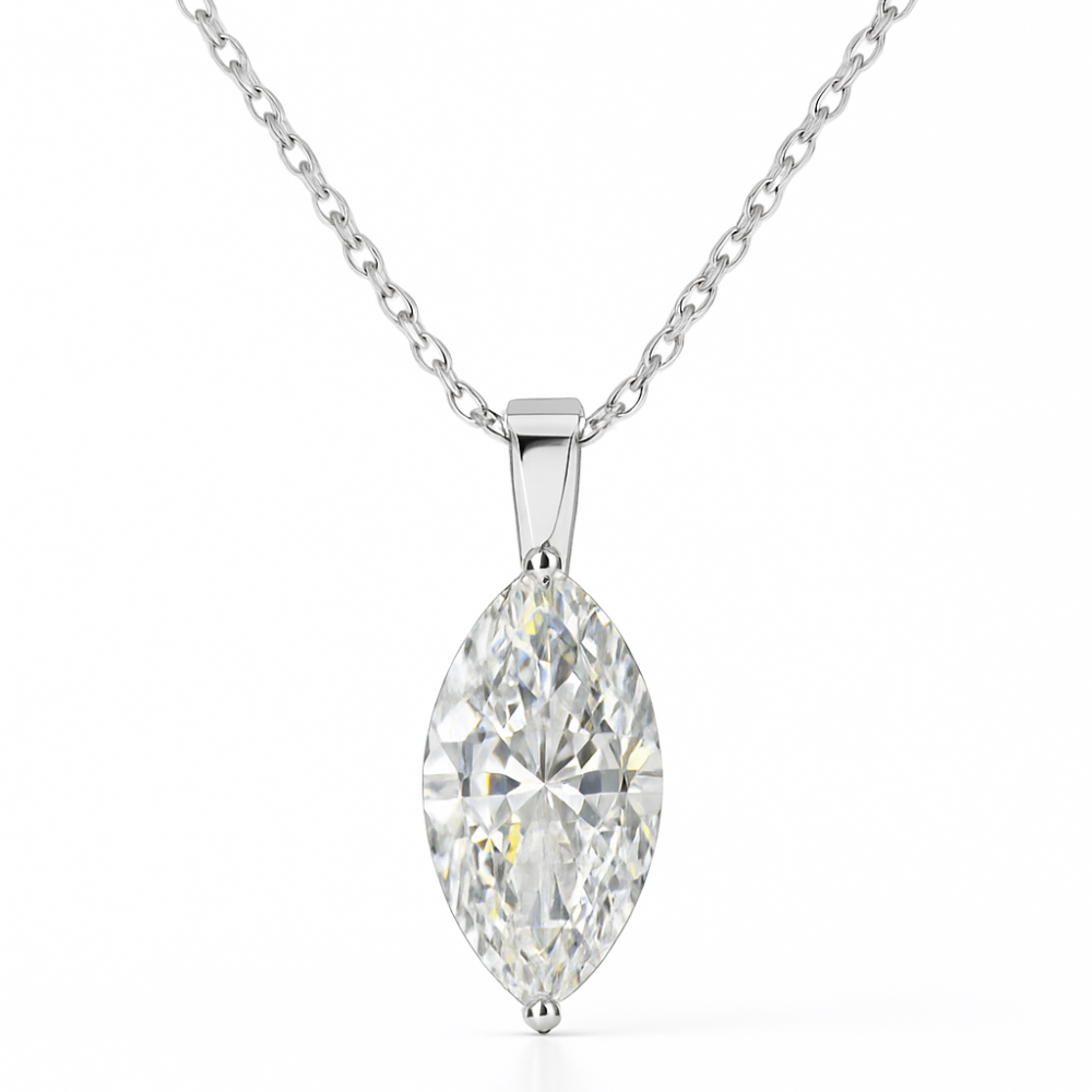 The Vesper Pendant is the embodiment of dramatic elegance and striking grace. This magnificent solitaire showcases a substantial 2.71 Carat Marquise Shape diamond, renowned for its elongated, boat-like silhouette and...