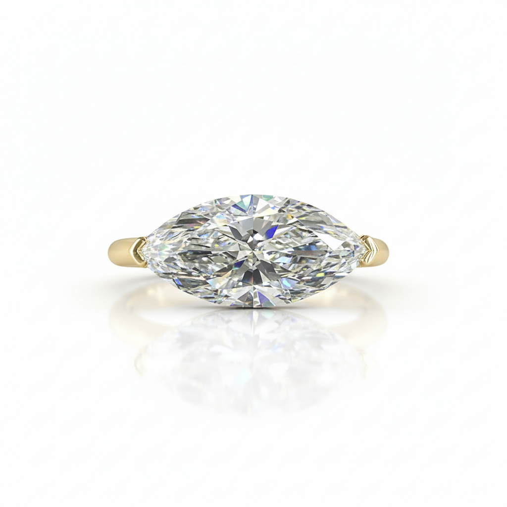 Elise Marquise Diamond Solitaire Ring in radiant 14K Yellow Gold. This captivating piece features a stunning 5.2 Ct Marquise Shape Diamond, celebrated for its elegant elongated silhouette that flatters the...