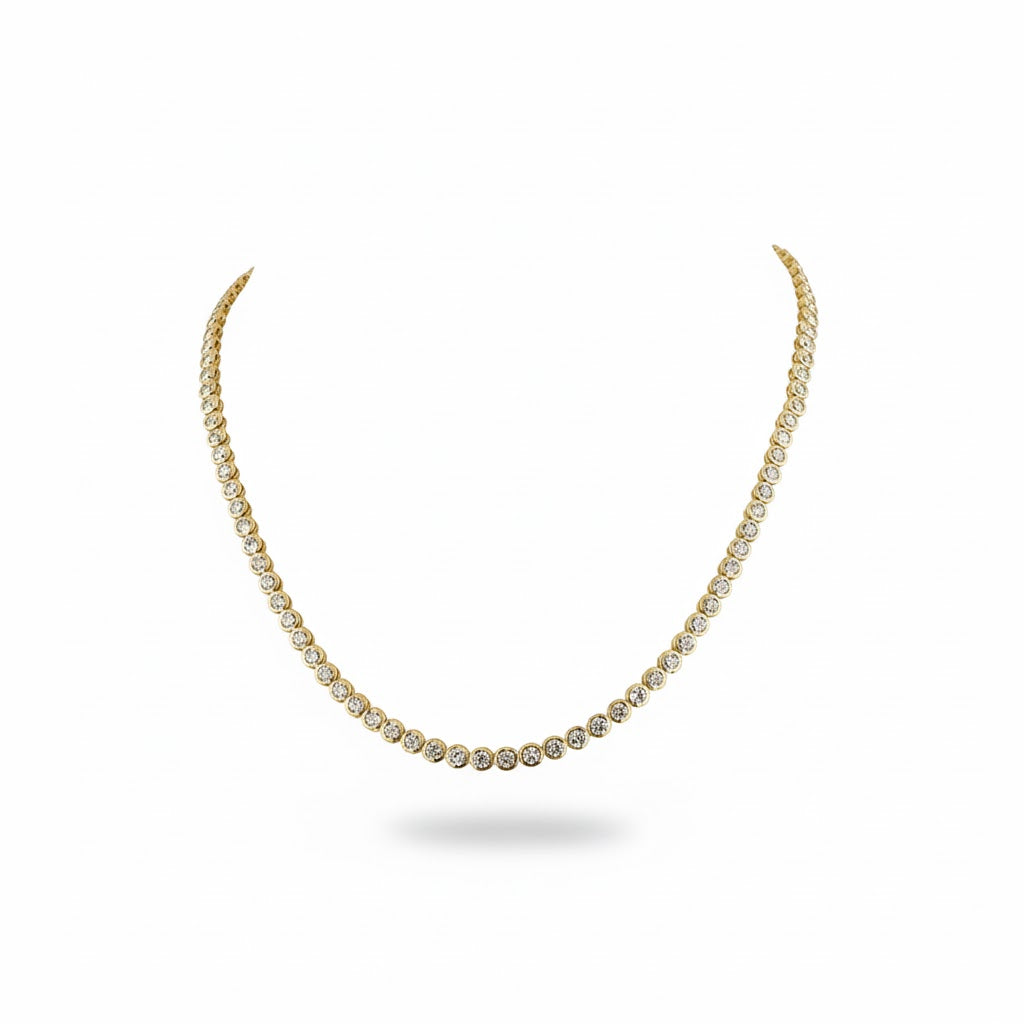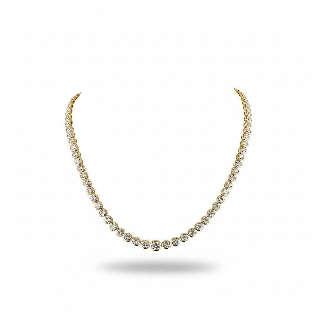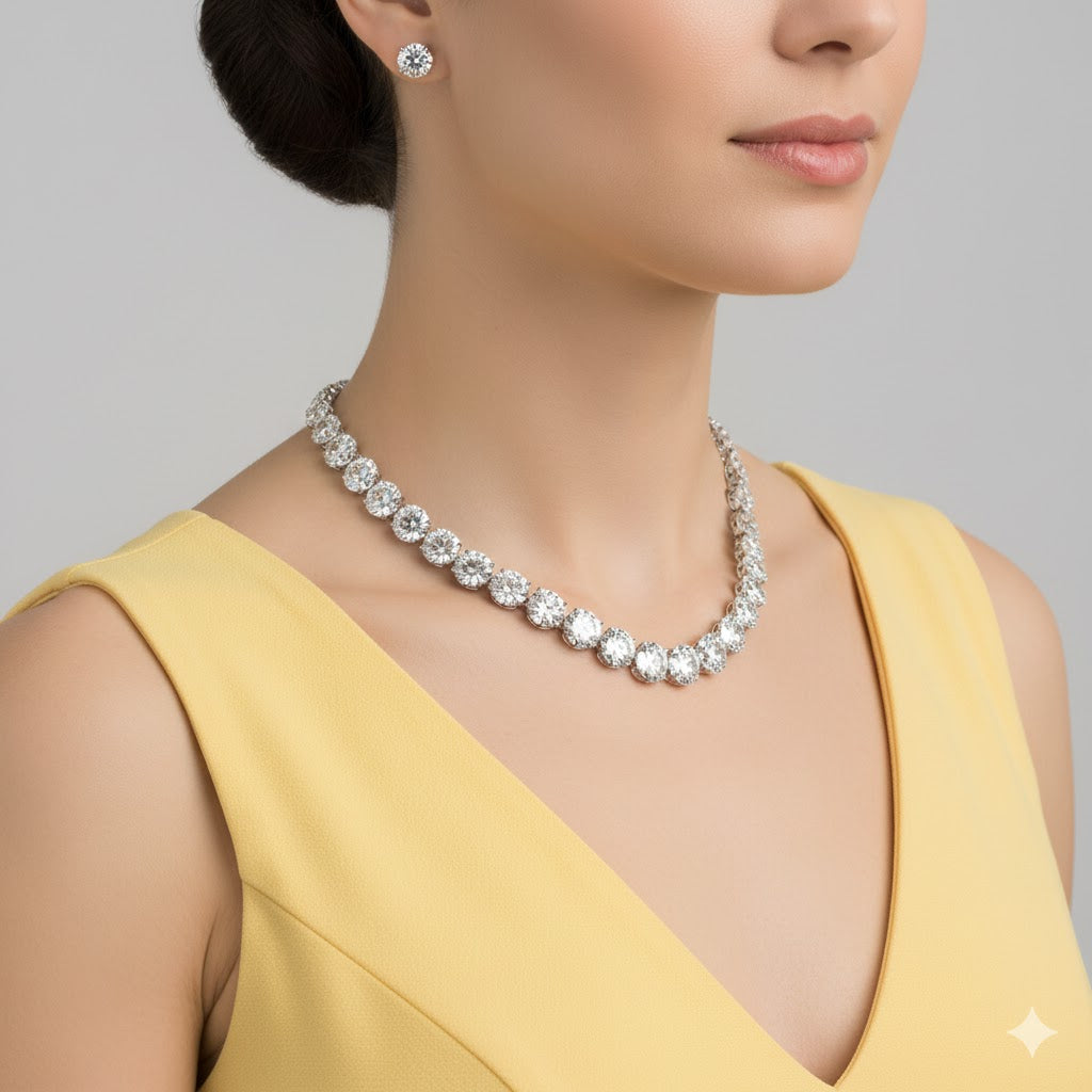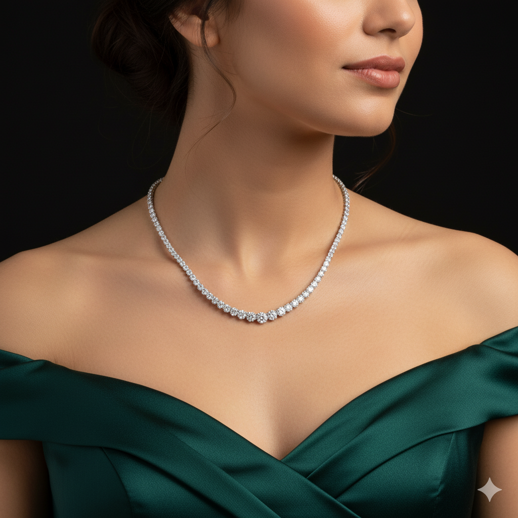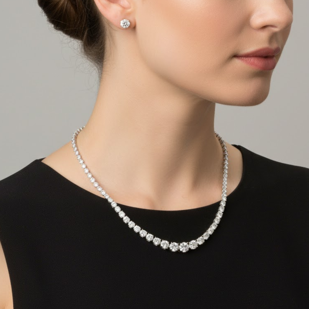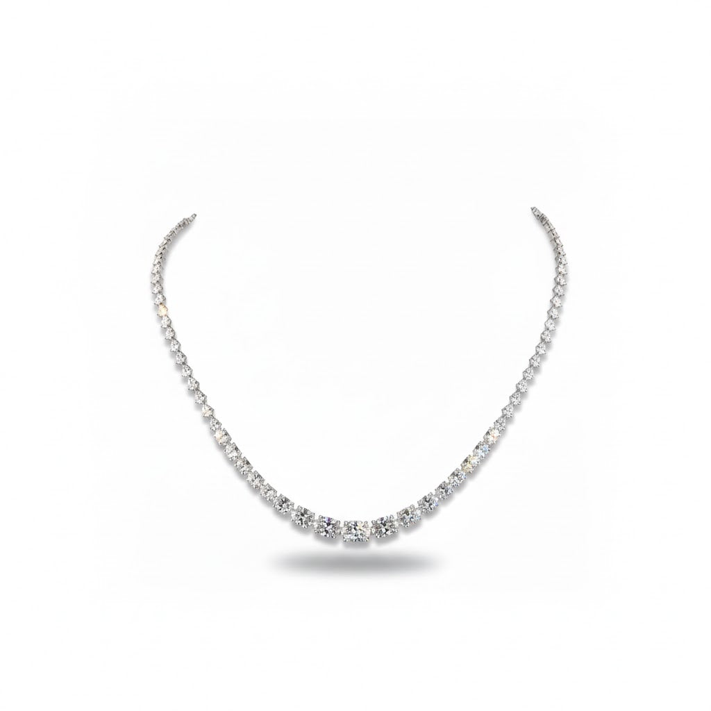 The Glint Round Brilliant Diamond Riviera Necklace is a masterpiece of classic luxury, designed to illuminate the neckline with continuous, shimmering light. This magnificent piece features a colossal 10.06 Carat...