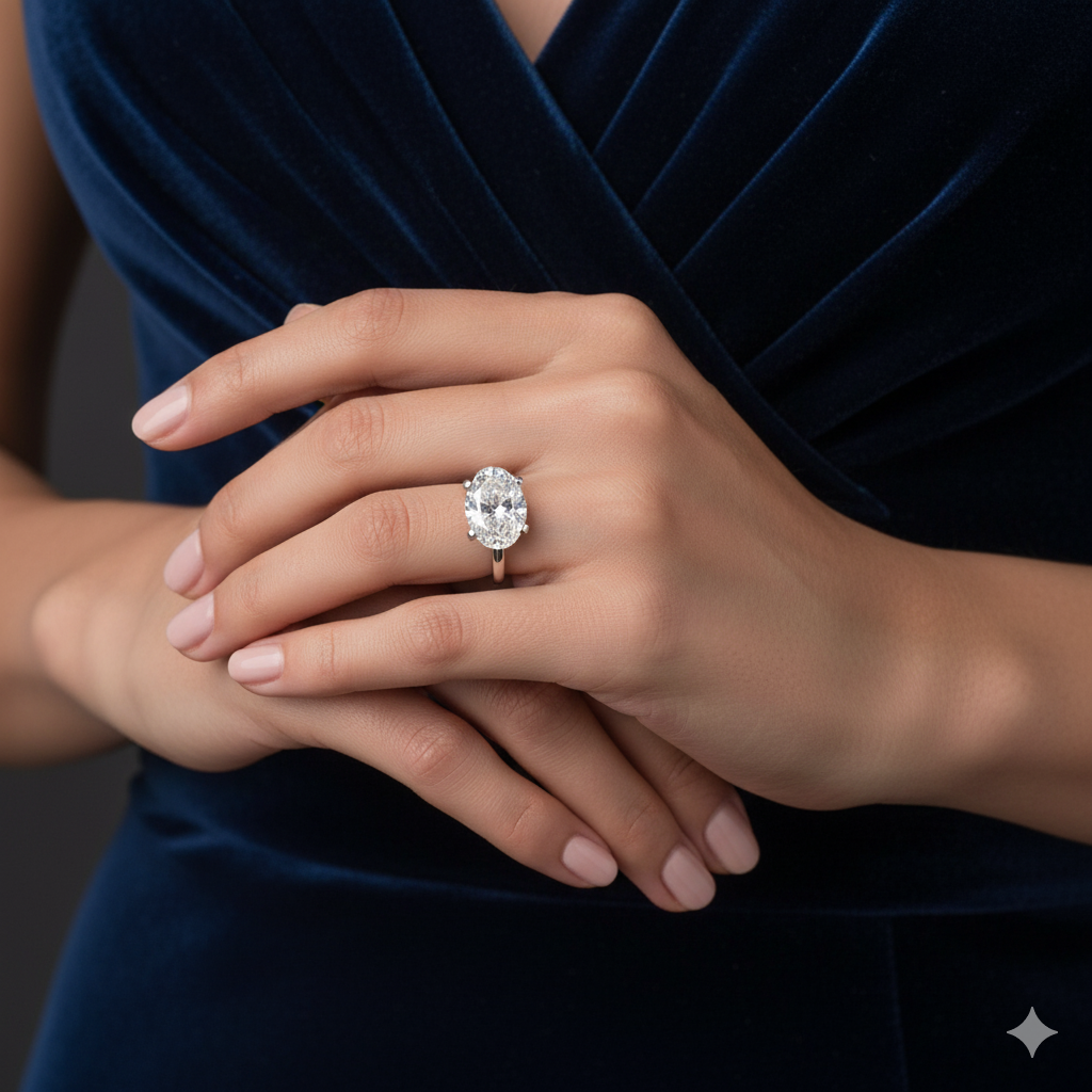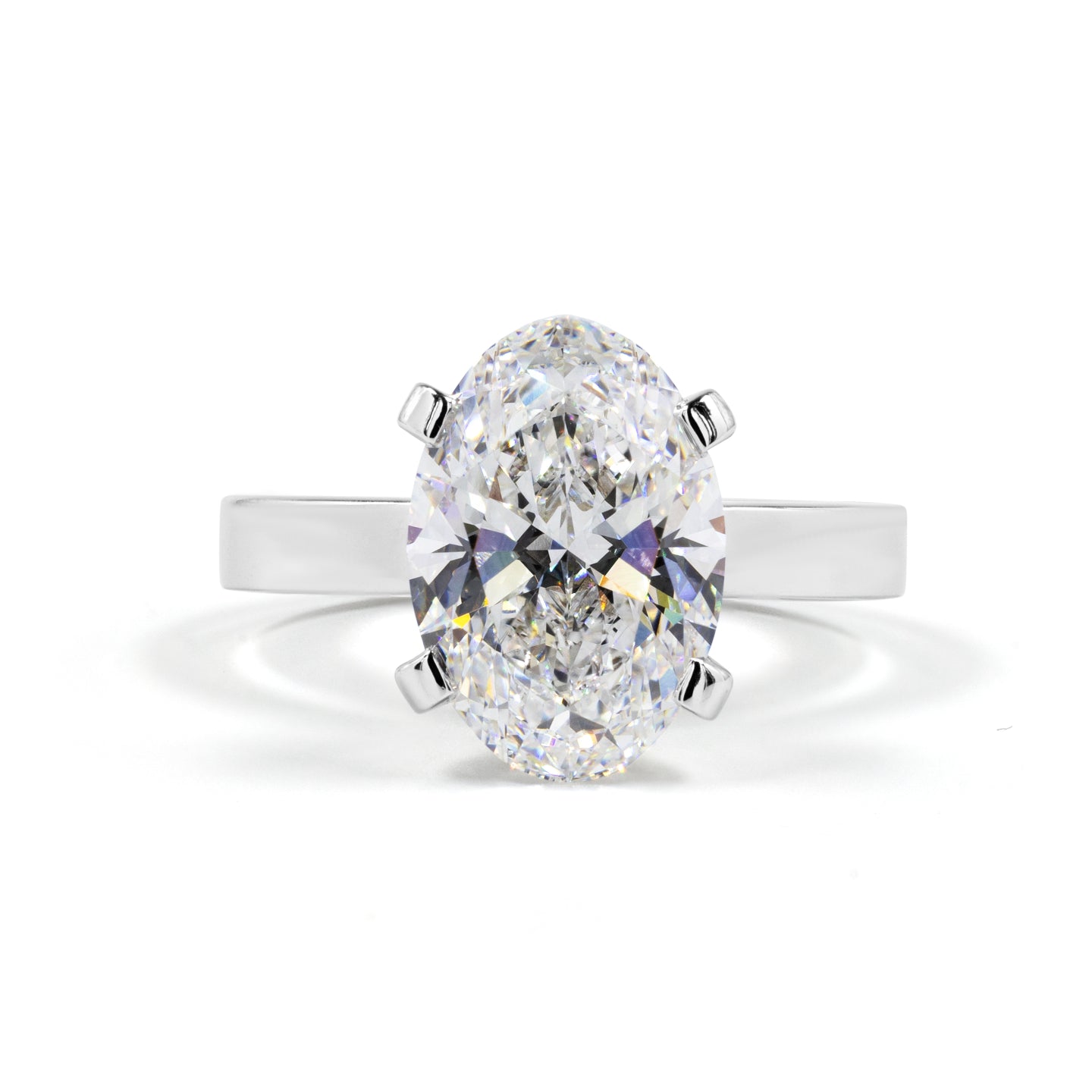 The Ophelia Oval Solitaire Ring in 14K White Gold features a spectacular 4.06 Carat Oval diamond, embodying ultimate luxury and refined sophistication. This magnificent ring showcases the highly sought-after Oval Cut Diamond,...
