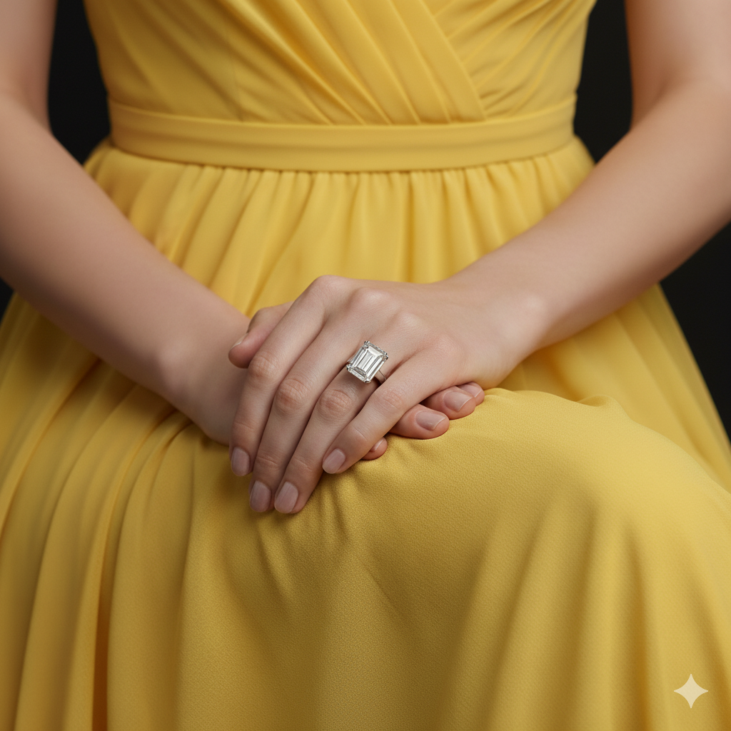 Astrid Octagon Diamond Solitaire Ring in radiant 14K Yellow Gold. This distinctive piece features a magnificent 3.33 Ct Octagon Shape Diamond, celebrated for its bold geometric precision and captivating brilliance....