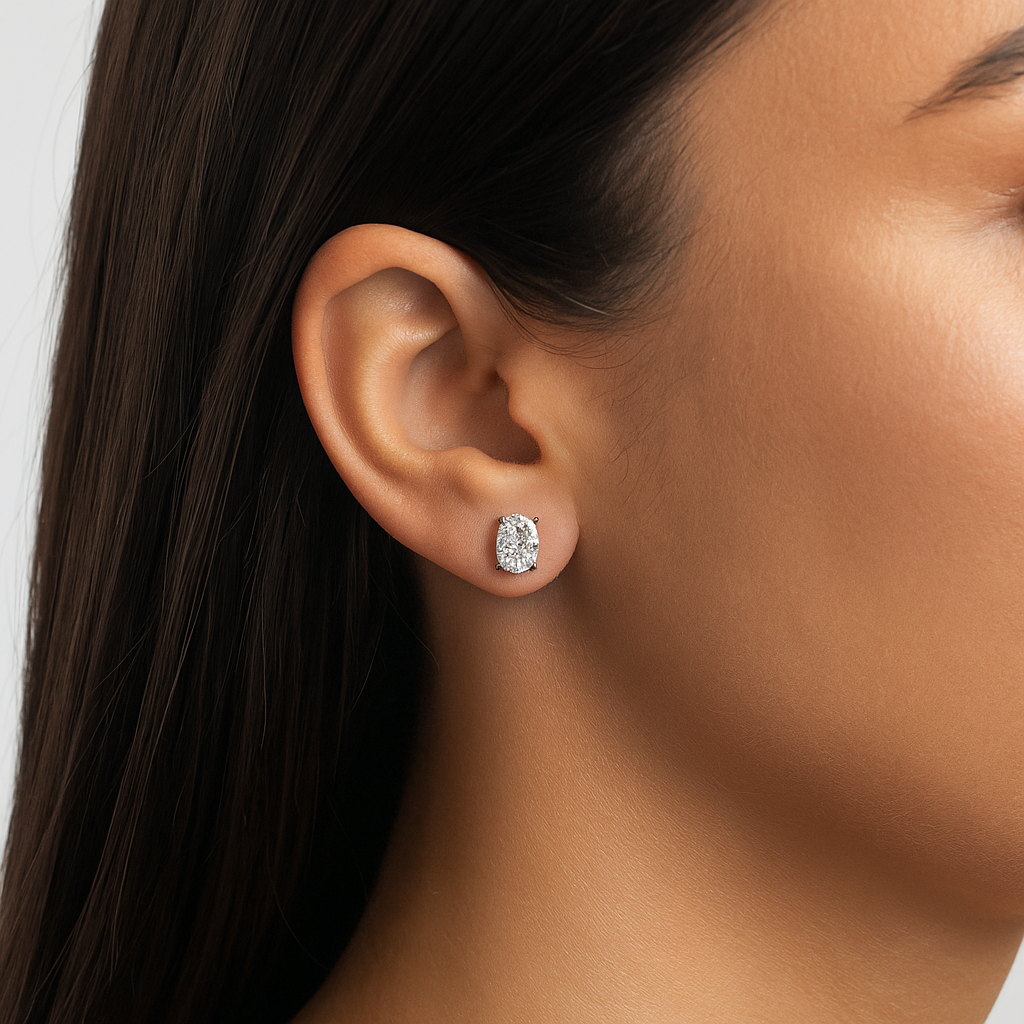 The Genevieve Oval Halo Stud Earrings are the definition of heirloom-quality luxury. These magnificent studs feature a stunning Oval Diamond centerpiece, a shape prized for its elegant fire and maximizing visual...