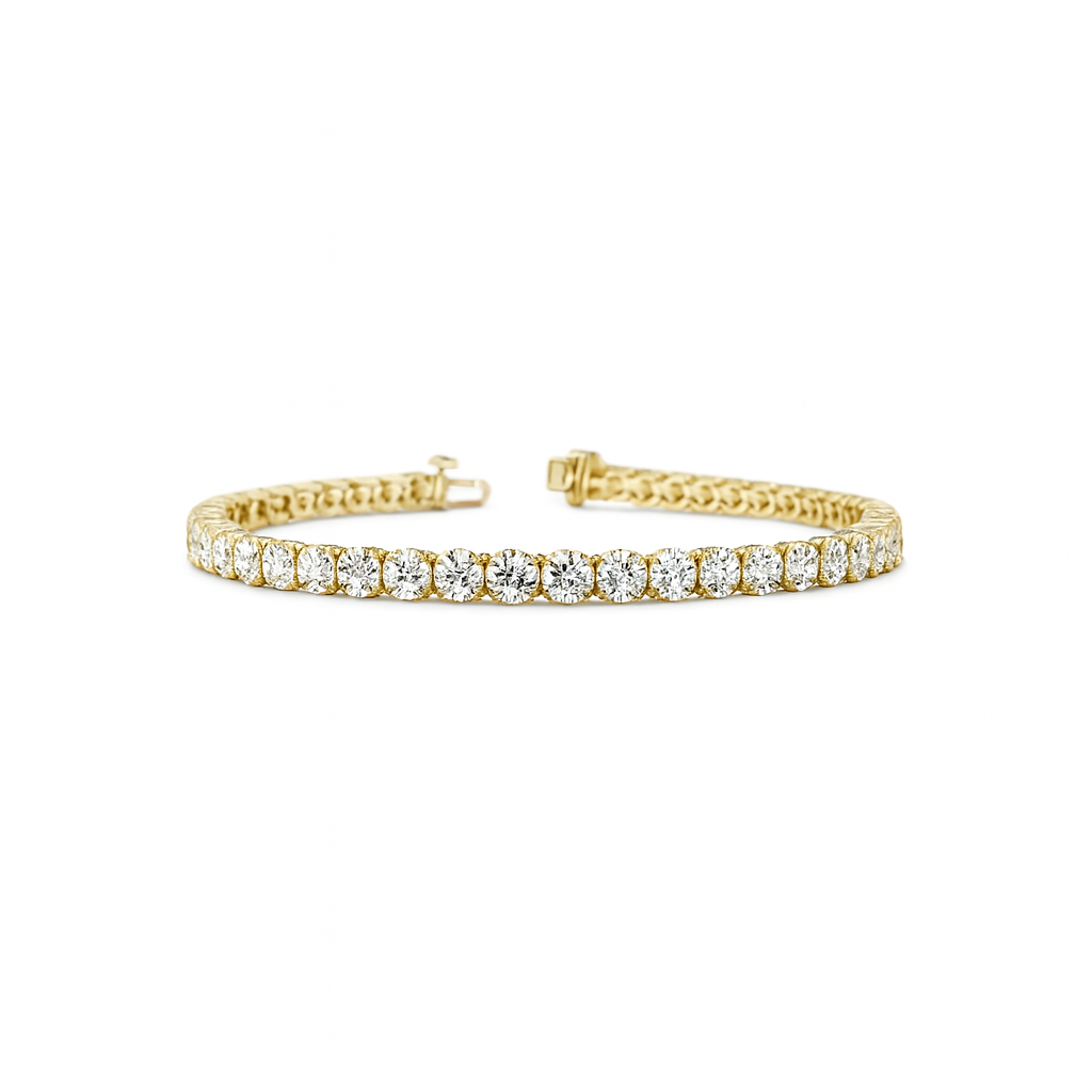 The Coronation Round Diamond Tennis Bracelet in 14K Yellow Gold is a magnificent piece, symbolizing supreme achievement and regal celebration. This spectacular Tennis Bracelet features a breathtaking 11.96 Carat Total Weight...