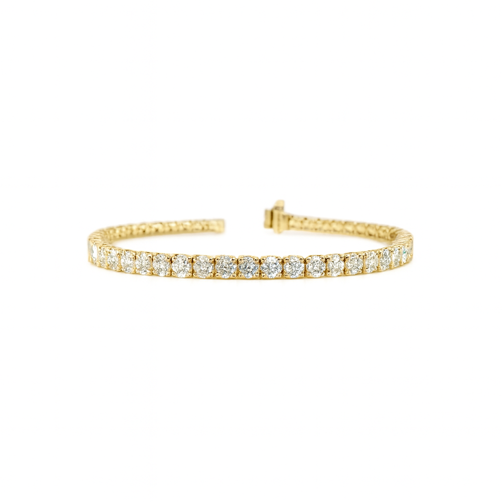 The Regina Round Diamond Tennis Bracelet in 14K Yellow Gold is a magnificent piece that embodies majestic elegance and undisputed royal status. This spectacular Tennis Bracelet crosses the ten-carat mark...