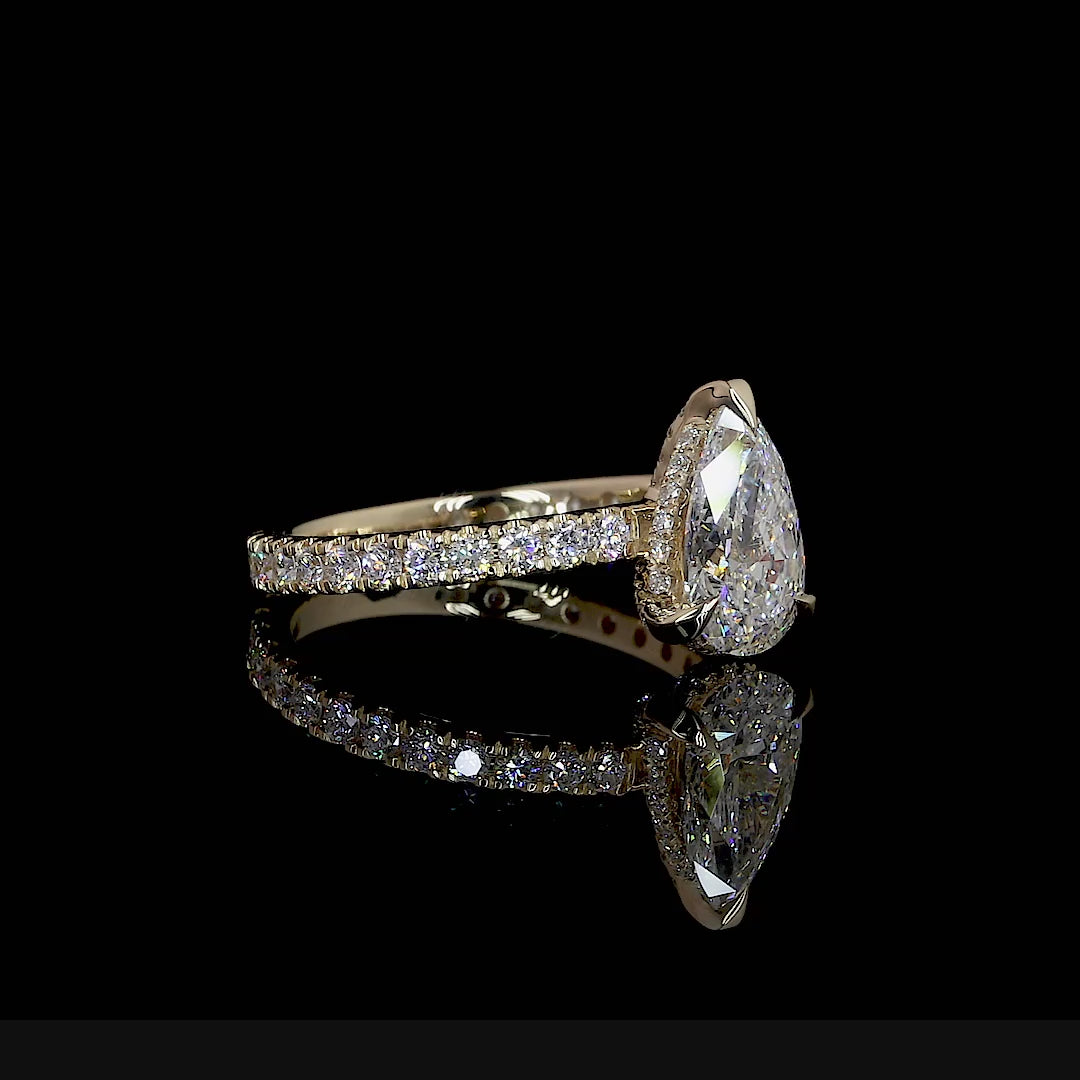 AVENELLE Pear Diamond Hidden Halo Ring | 2.77 cts | 14K Yellow Gold