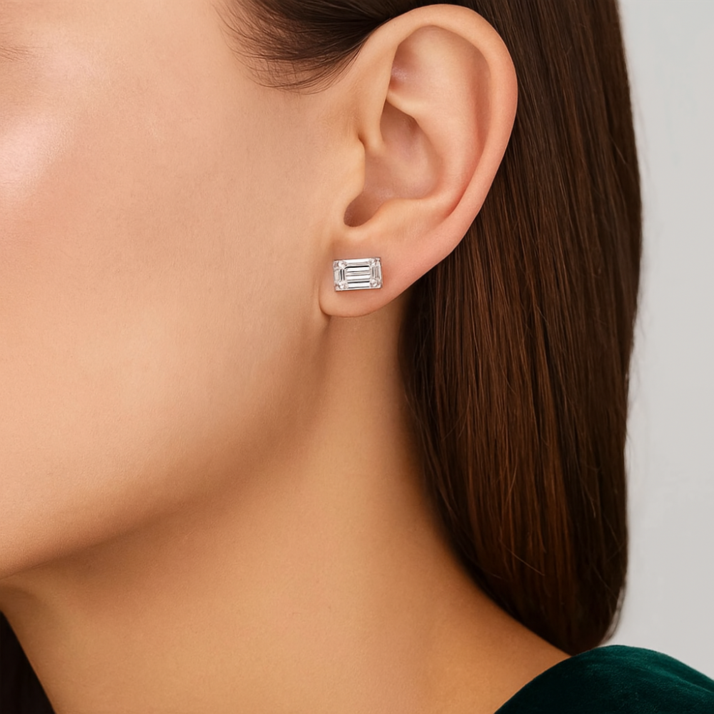 IRIS Emerald Stud Earrings | 2.11 cts | 14K White Gold