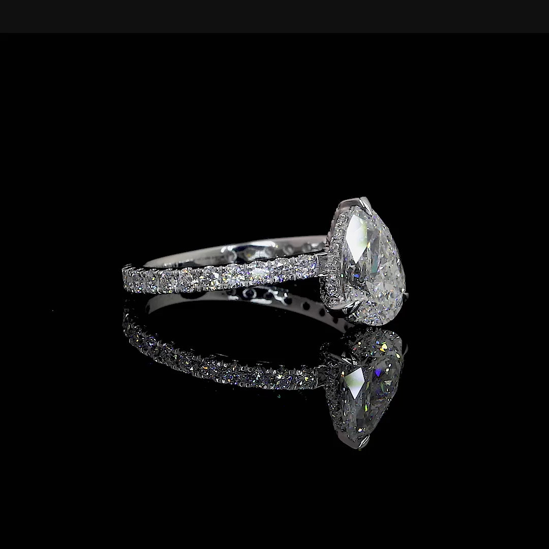 NOVARRA Pear Diamond Hidden Halo Ring | 9.72 cts | 14K White Gold